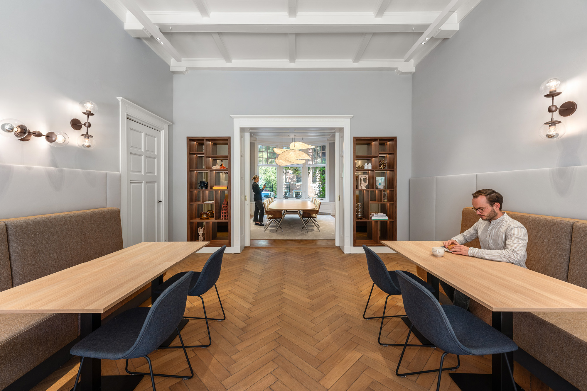 Inspirerende uitbreiding van Evers Soerjatin: twee panden, één interieur. Evers Soerjatin is een Amsterdams advocatenkantoor gespecialiseerd in complexe corporate en commerciële geschillen. Met een niet te missen vestiging vlakbij de ingang van het Vondelpark trok hun pand al veel bekijks en nu helemaal.