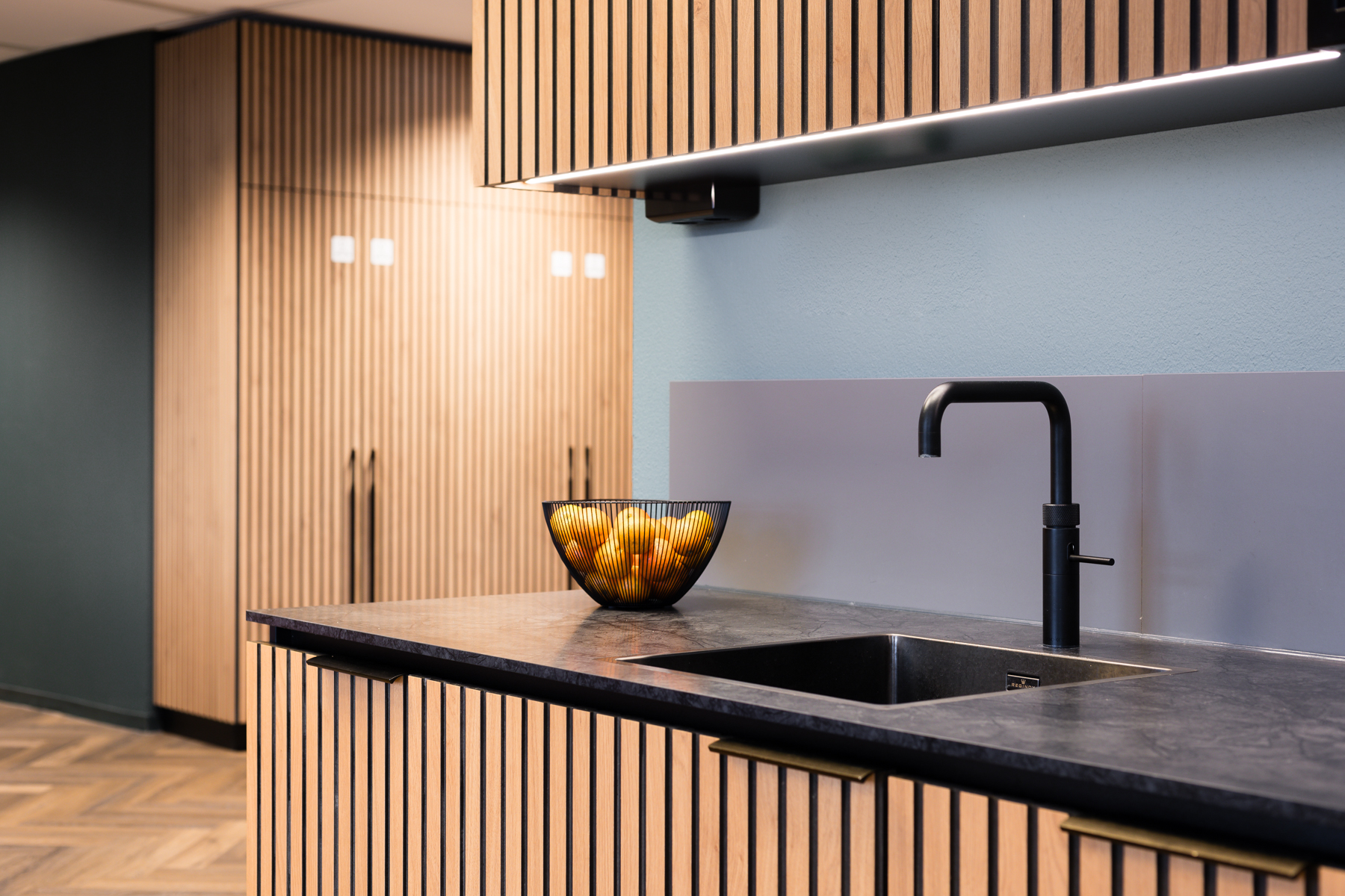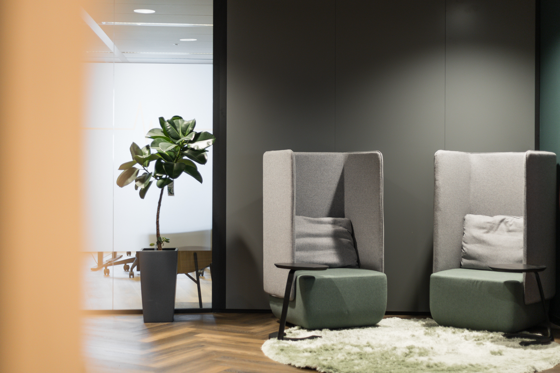 During the design process, we encouraged the tech company to step outside their comfort zone. We collaborated with their internal project teams, presenting various options and convincing them with visual renderings. Choosing darker colors, which create a warm and homely atmosphere, was initially a bold step for them. However, in the end, the team unanimously expressed their satisfaction with the outcome.